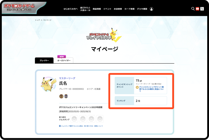 事前に「ポケモンカードゲーム プレイヤーズクラブ」に登録する必要があるよ。