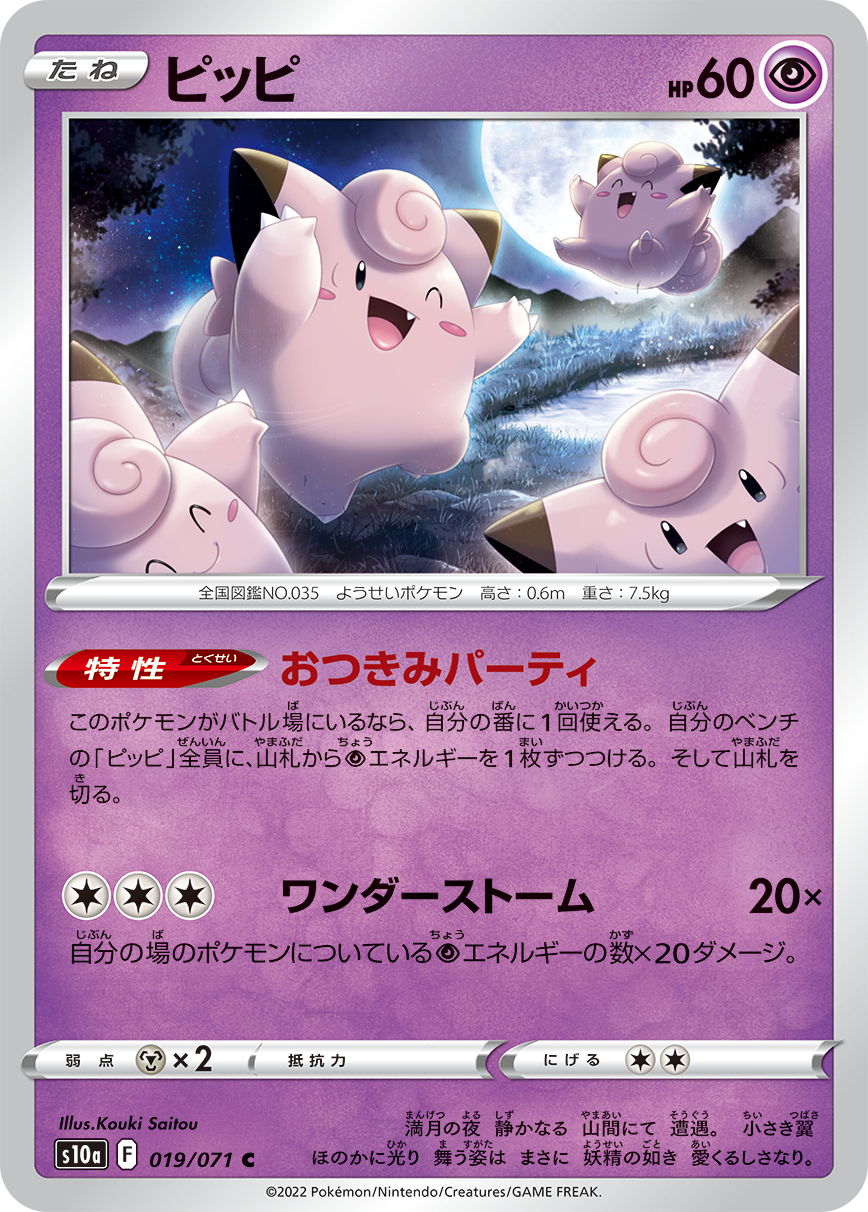 切り立った山に囲まれた泉は、夜にもかかわらずキラキラと水面を揺らしていた。いつもより大きく見える月は、今にも地面に触れてしまいそうなほど大きく見える。辺りは満月のまばゆい光に照らされ、夜中にもかかわらず地形のすみずみまでよく見渡せた。せっかくこんな素敵な景色が見えるんだ。今日はこの辺りで泊まるのもいいかもしれない。そう思ってテントを張っていると、どこからか愛らしい鳴き声が聞こえてきた。ポケモンが近づいているのかもしれない。咄嗟に草むらに身を隠すと、ピッピたちが歩いてきたのが見えた。