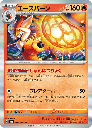 たねポケモン、進化ポケモン、ともに登場する。きぜつしたとき、相手はサイドを3枚とる。