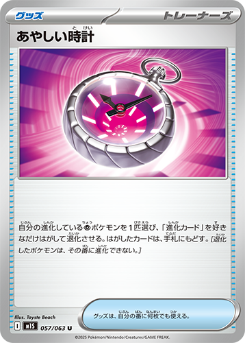 手札から2進化ポケモンを1枚選び、1進化をとばして進化させることができる。2進化ポケモンを使うデッキには欠かせない1枚だ。