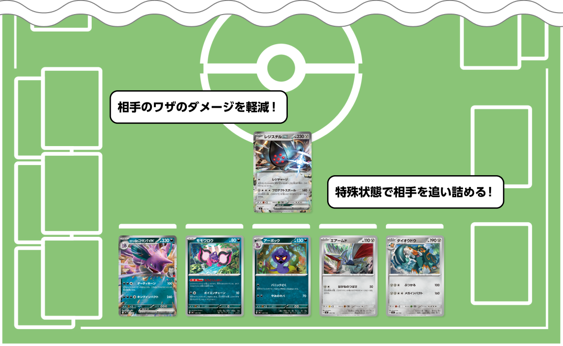 ワザ「はがねのつばさ」は、相手から受けるワザのダメージを「−30」できる。レジスチルexとともに高い防御力が頼りになるぞ。