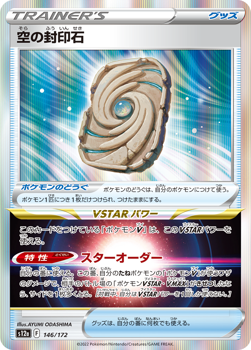 ポケモンVにつけることで、VSTARパワーの特性「スターオーダー」が使えるようになるポケモンのどうぐ。