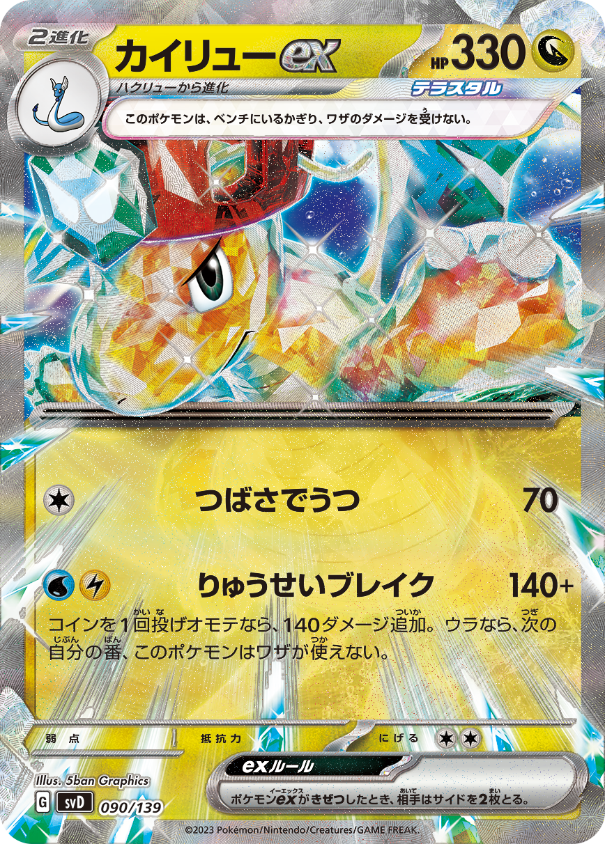 「exスタートデッキ テラスタル カイリュー」「exスタートデッキ テラスタル ヨクバリス」では、「おまかせexスタートデッキ」でしか手に入らなかった特別なデッキが手に入るぞ! それぞれのデッキにはポケモンexが必ず1枚キラで入っている! 「テラスタル」のポケモンexを使ってキラキラと輝きながら対戦しよう!