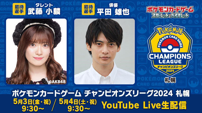 5月3日(金・祝)・4日(土・祝)に札幌ドームで開催されるチャンピオンズリーグ2024 札幌に参加する、招待選手が決定しました。対戦の様子は【公式】ポケモンカードチャンネルにて、生配信でお届けします。ぜひご期待下さい。