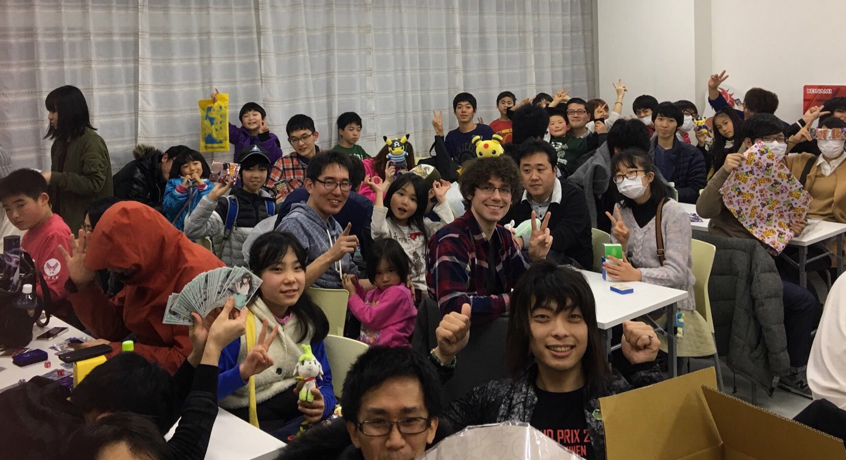 全年齢対象に行っています。大人の場合は、簡単にルールと勝利条件を教え、対戦の中でポケカの魅力を解説し、考えながら遊ぶ事を体験していただきます。