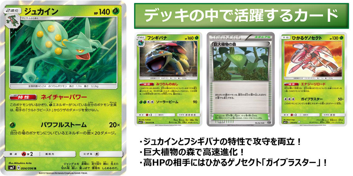 ジュカインとフシギバナ、2匹の密林の主が繰り出すコンボデッキ! エネルギーをたくさん溜め込んで自然の力を見せつけろ!