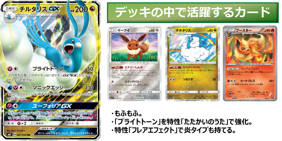 もふもふなポケモンがいっぱい、思わずバトルを忘れてもふもふしたい...と思ったら実は強力! チルタリスGXについてはいろいろな組み方のデッキが投稿されましたが、かわいいと強いが同居したこちらのデッキを入選としました。